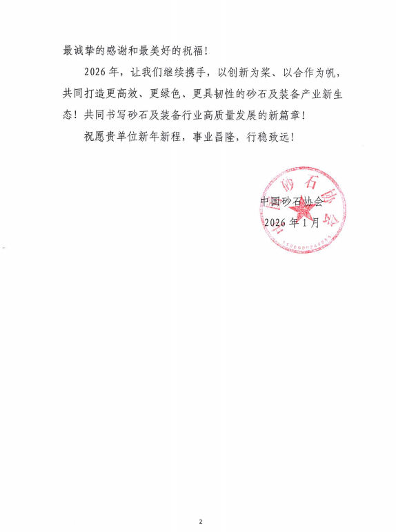 近日,山東鑫金山智能裝備有限公司收到中國砂石協會發來的感謝信。鑫金山對此致以誠摯謝意,這份認可既是對企業深耕行業的肯定,也是對全體員工的莫大鼓舞。