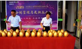 隨后鑫金山公司副總經理王總宣布積分制第一月度獲獎名單,現場為我們表現優秀的獲獎員工舉行了砸金蛋抽獎游戲環節,并準備了一等獎、二等獎、三等獎精美的獎品和雙份中秋節福利。獲獎者依次上臺砸金蛋,一件件大獎被抽走,一個個臉上洋溢著喜悅的笑容。這次快樂會議無論是臺上砸金蛋的還是臺下看著的員工們都玩的很開心。王總表示“快樂會議”旨在為了快樂,為了榮耀,讓員工歡聚在一起,在公平和相互尊重的競爭中,追求共同的快樂和超越,享受工作挑戰帶來的樂趣。鑫金山公司積分制管理快樂會議由此起步,通過雙重認可+正向引導,讓員工在積分制中體驗到有趣與感動,工作壓力得以釋放,促進員工向好、向上。